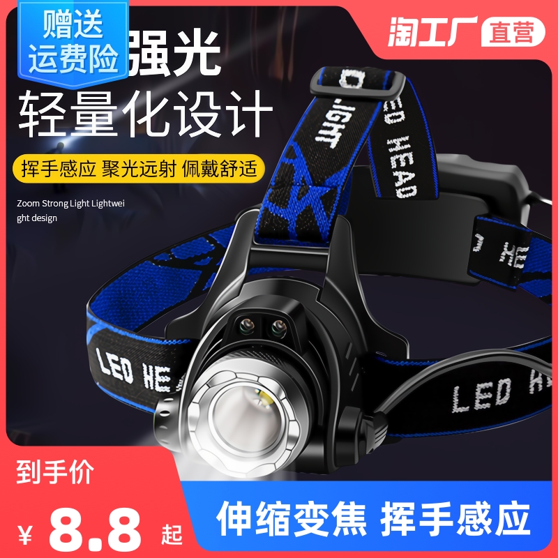 헤드 램프 강한 빛 충전식 초 밝기 초 장수명 낚시 특수 헤드 마운트 조명 유도 야간 낚시 토치 야외