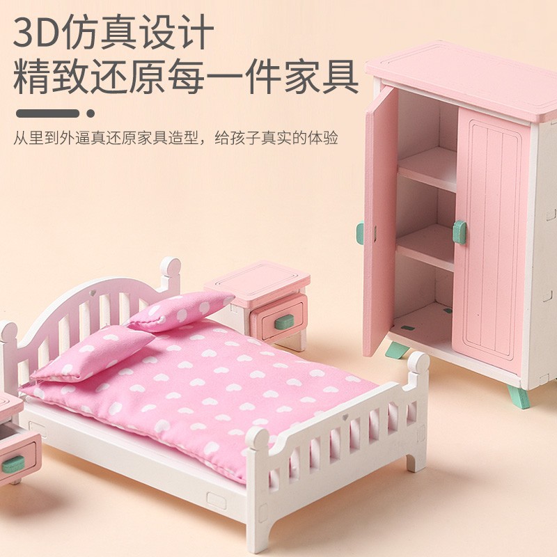 대외 무역 어린이 미니 가구 나무 주방 거실 침실 소녀 놀이 집 역할 놀이 작은 가구 세트
