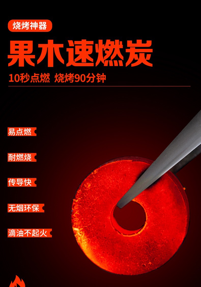 户外高温烧烤,易燃机制炭,围炉煮茶,专用纯竹炭,引火煮茶