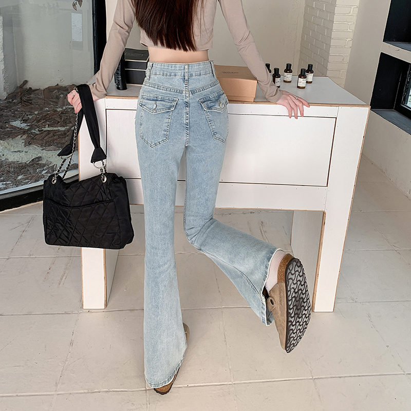 실제 ~ 마이크로 플레어 청바지 여성 가을 하이 웨이스트 탄성 얇은 슬림 힙 리프팅 팬츠 레트로 아메리칸 스타일