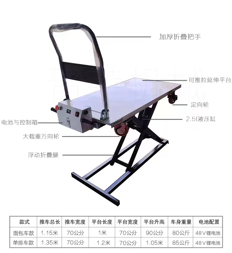 电动喜目雷克车便携式随车升降平板车液压式剪刀式升降台